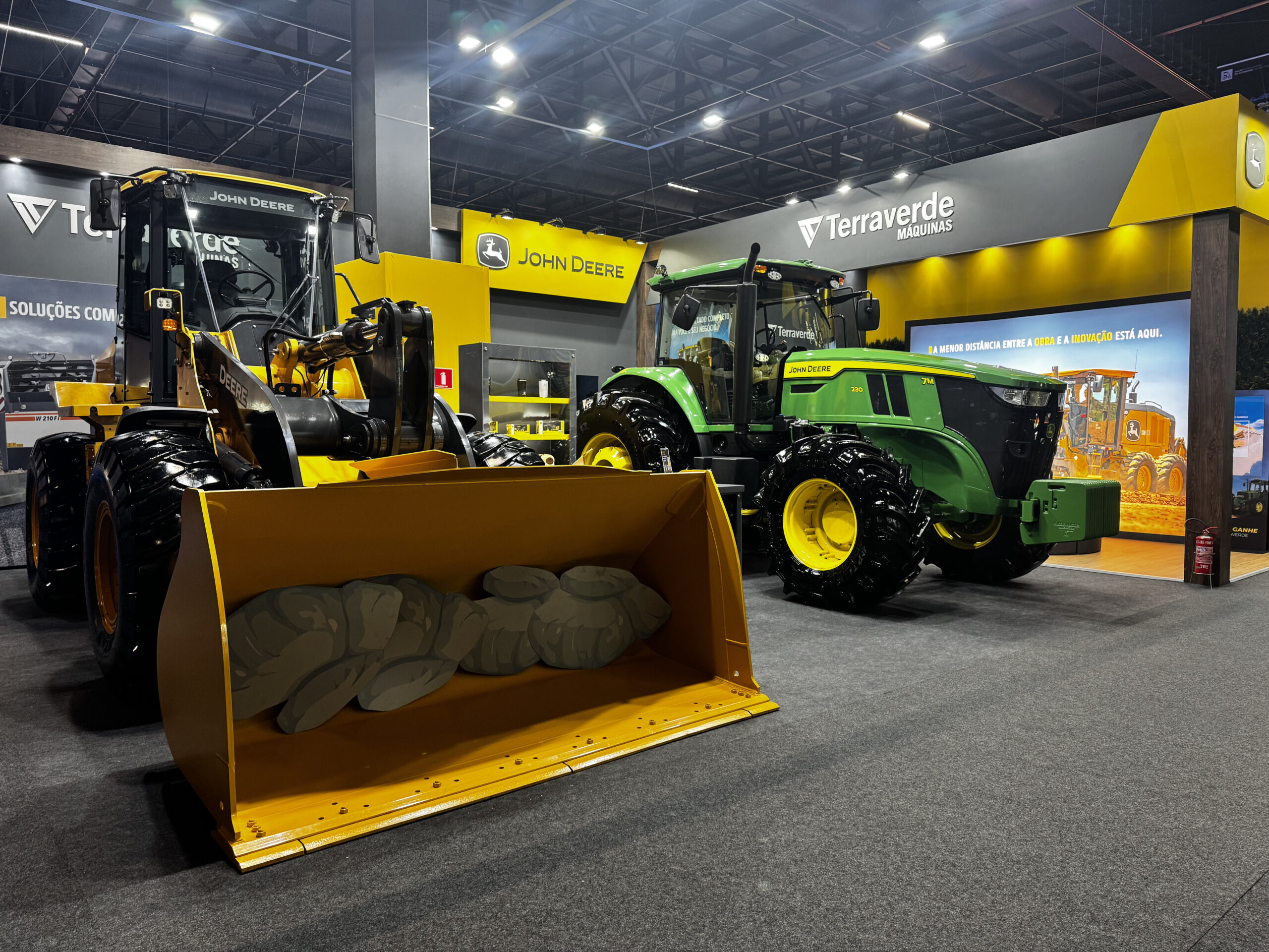 Estande reúne a pá-carregadeira 624 P e o trator 7M, com pacotes de automação avançados e recursos de conectividade A John Deere, empresa global de